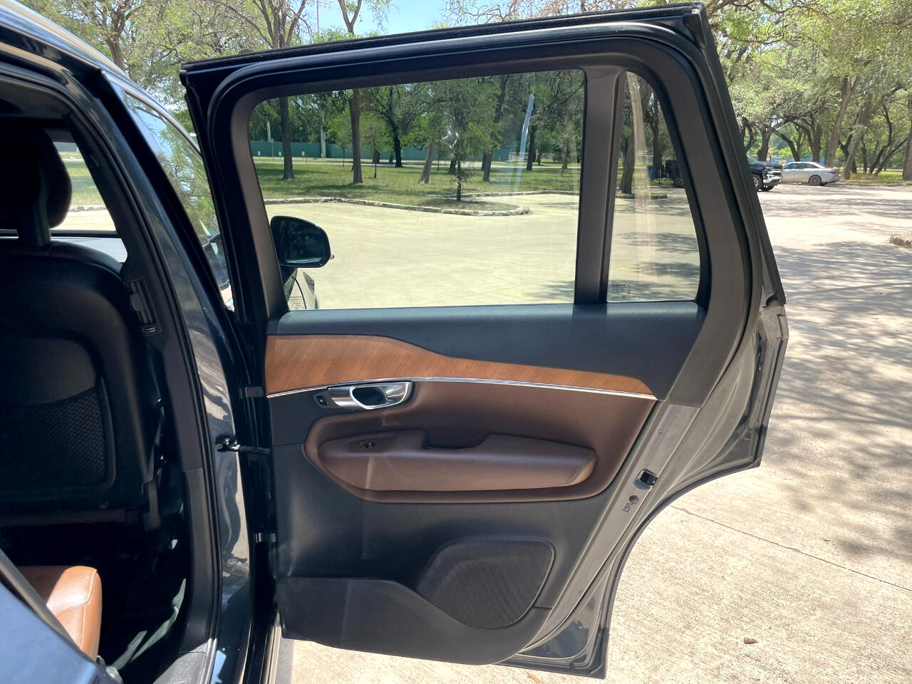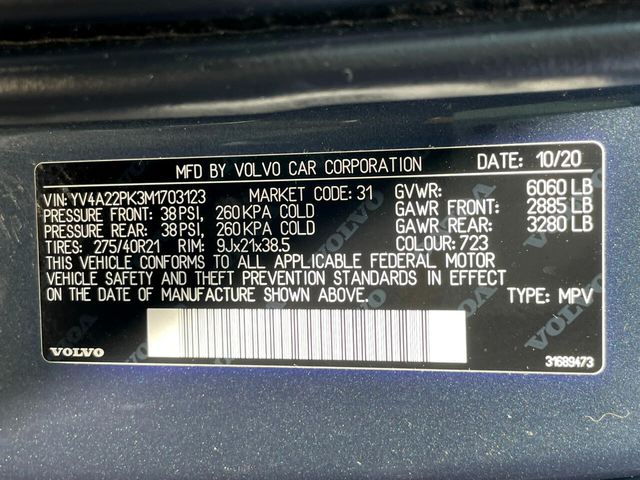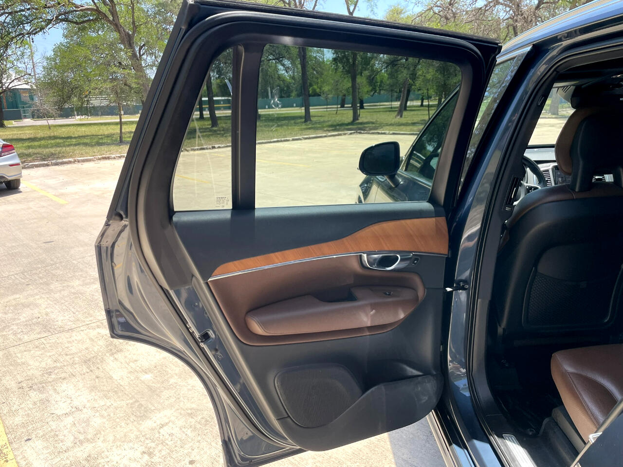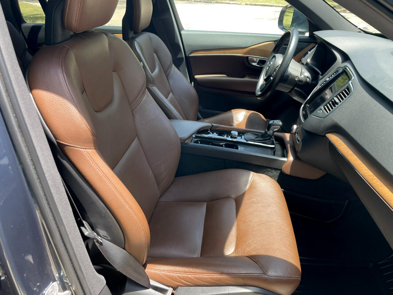 2021 VOLVO XC90 T6 MOMENTUM DENIM BLUE MAROON BROWN LEATHER UPHOLSTERY ALL WHEEL DRIVE TURBOCHARGED 2.0L 4 CYL GEARTRONIC 8 SPEED AUTOMATIC TRANSMISSION W OVERDRIVE AM/FM/XM HARMON KARDON SOUND BLUETOOTH BACKUP CAM KEYLESS ENTRY COOLED & HEATED SEAT POWER SEAT SPLIT FOLD THIRD ROW SEAT 21 INCH ALUMINUM ALLOY WHEELS POWER LIFT GATE REAR WINDOW WIPER ROOF RAILS 25051462206274