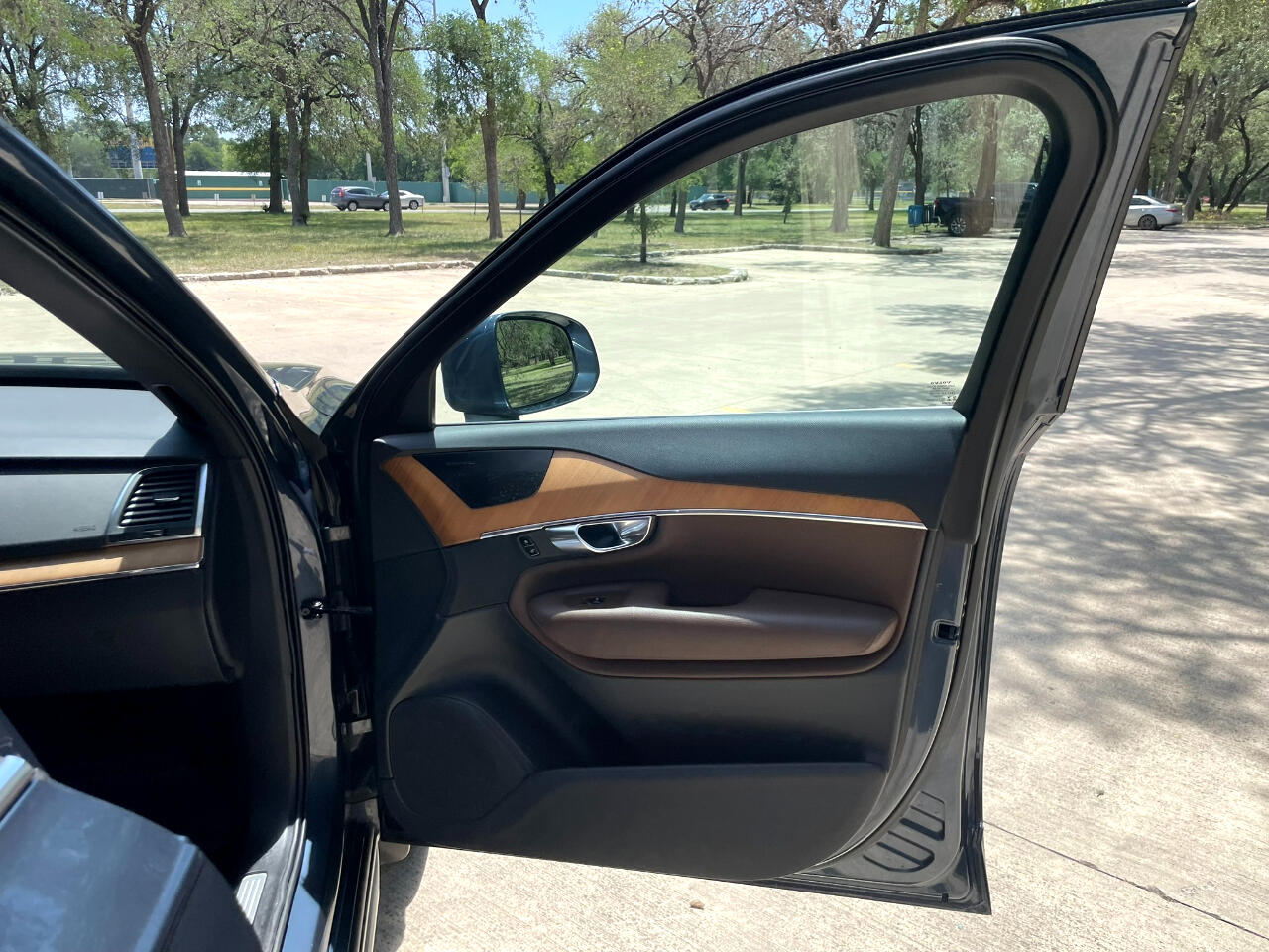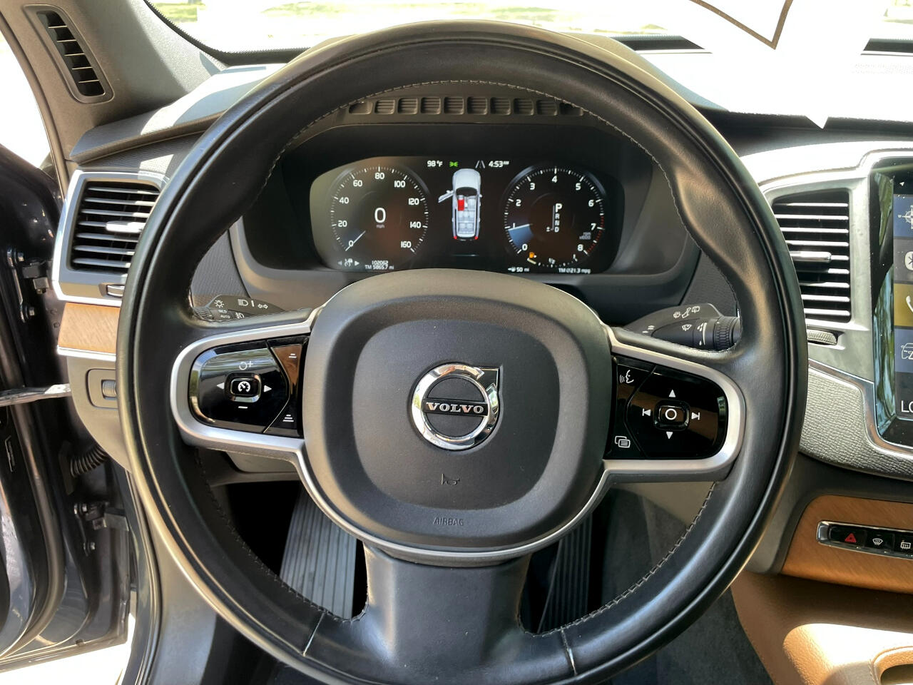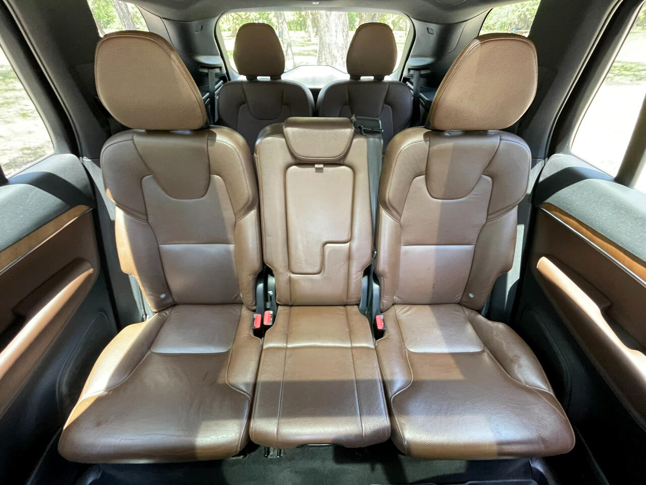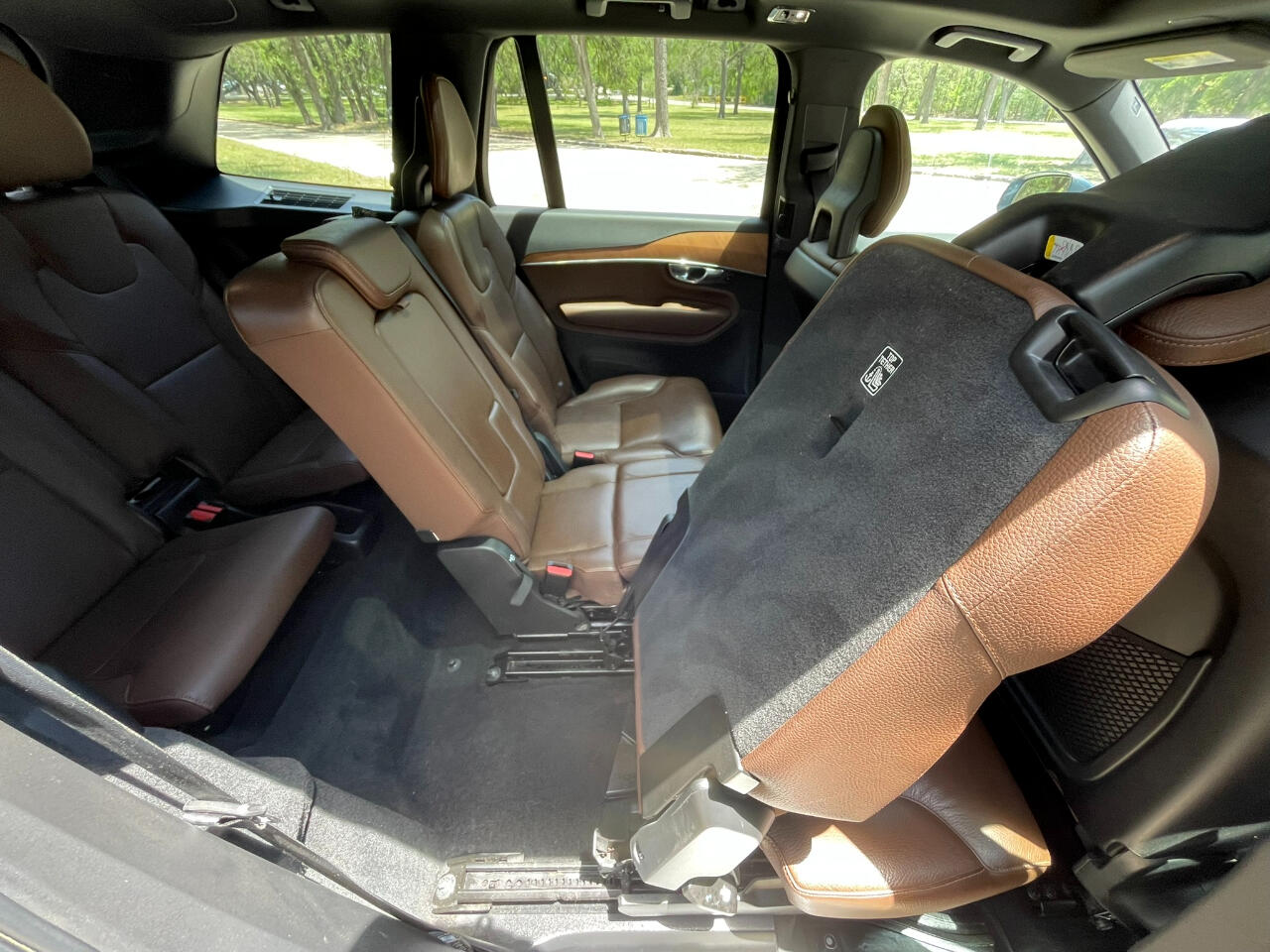 2021 VOLVO XC90 T6 MOMENTUM DENIM BLUE MAROON BROWN LEATHER UPHOLSTERY ALL WHEEL DRIVE TURBOCHARGED 2.0L 4 CYL GEARTRONIC 8 SPEED AUTOMATIC TRANSMISSION W OVERDRIVE AM/FM/XM HARMON KARDON SOUND BLUETOOTH BACKUP CAM KEYLESS ENTRY COOLED & HEATED SEAT POWER SEAT SPLIT FOLD THIRD ROW SEAT 21 INCH ALUMINUM ALLOY WHEELS POWER LIFT GATE REAR WINDOW WIPER ROOF RAILS 25051462206274