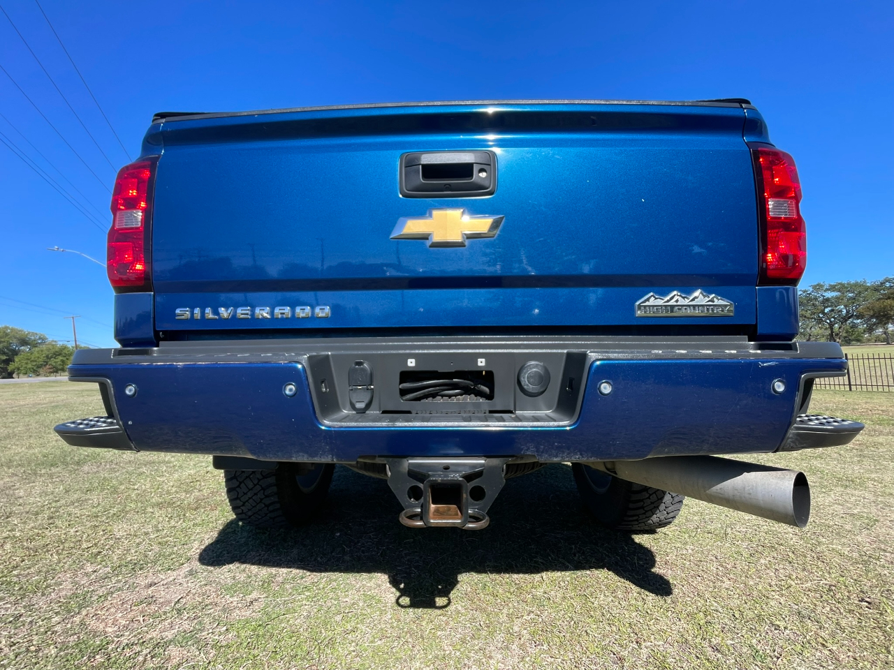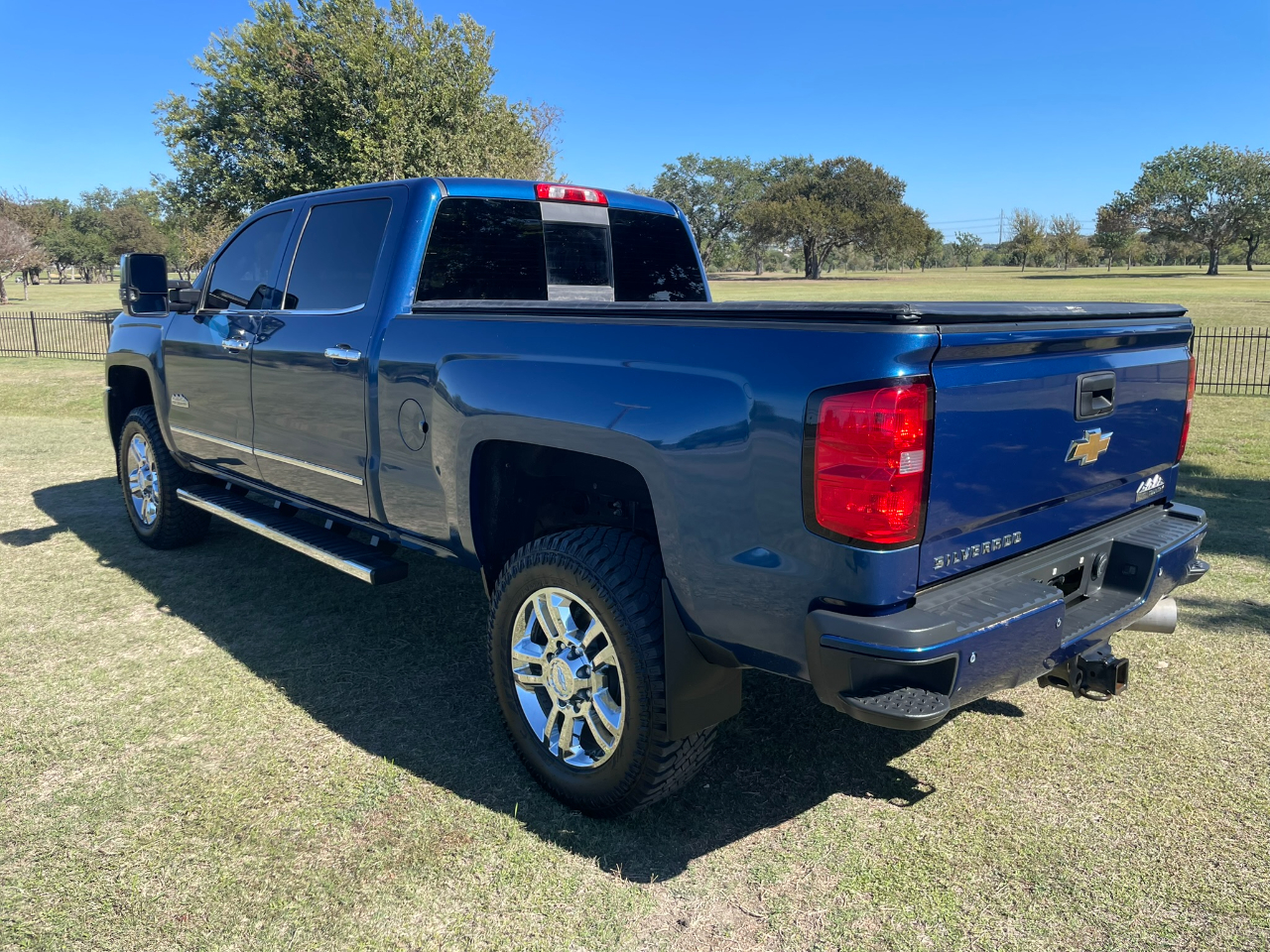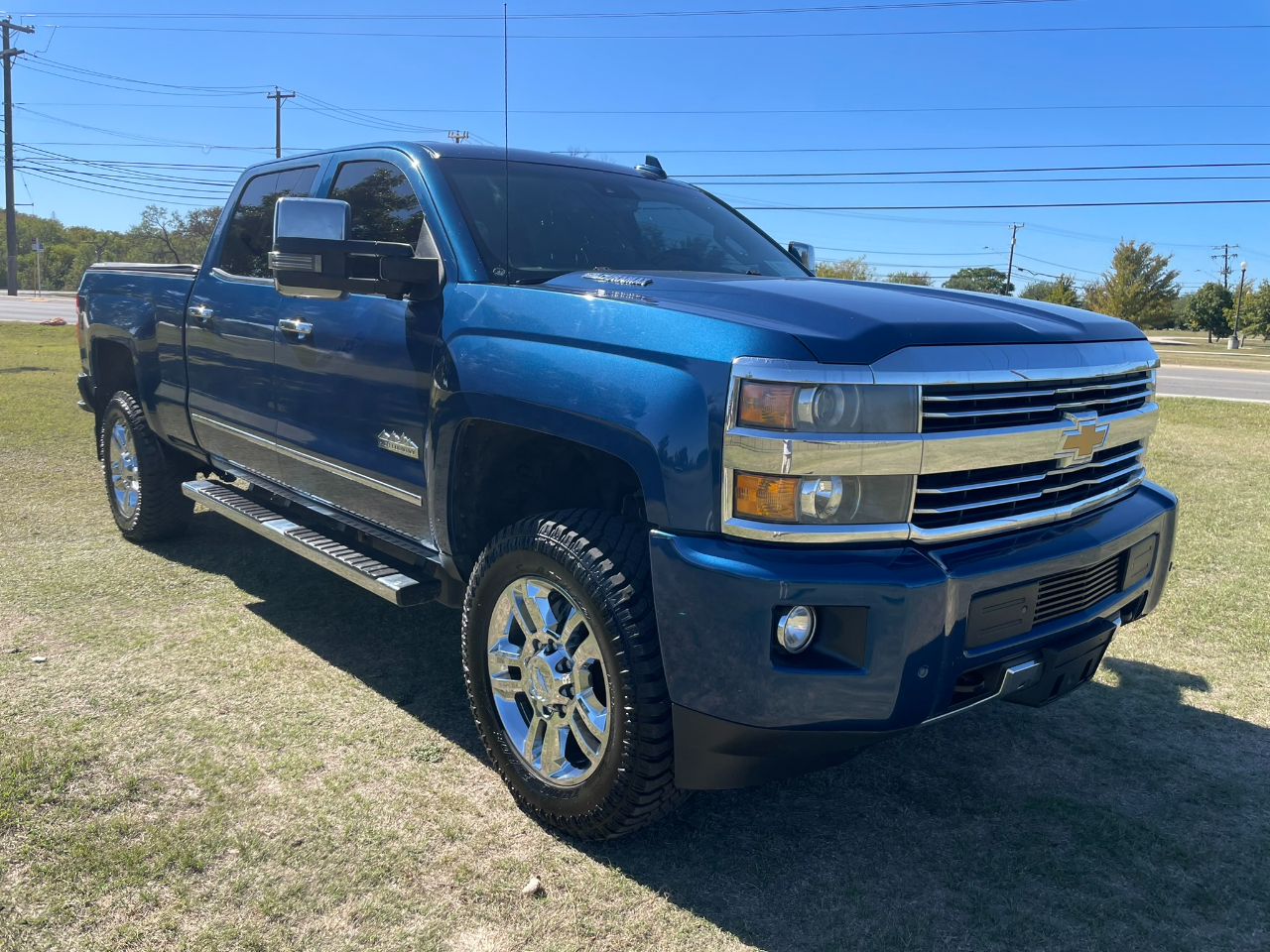 2015 CHEVROLET SILVERDO 2500HD CREW CAB HIGH COUNTRY DEEP OCEAN BLUE METALLIC SADDLE LEATHER INTERIOR REAR STEP BUMPER 4X4 6.6L DURAMAX TURBO DIESEL V8 6 SPEED ALLISON AUTOMATIC TRANSMISSION AM/FM/XM BOSE SOUND BACKUP CAM REMOTE KEYLESS ENTRY POWER PEDALS COOLED & HEATED SEAT POWER SEAT W MEMORY 20 INCH CHROMED ALUMINUM WHEELS RUNNING BOARDS LIFT TONNEAU COVER TOW PACKAGE 25110543814418