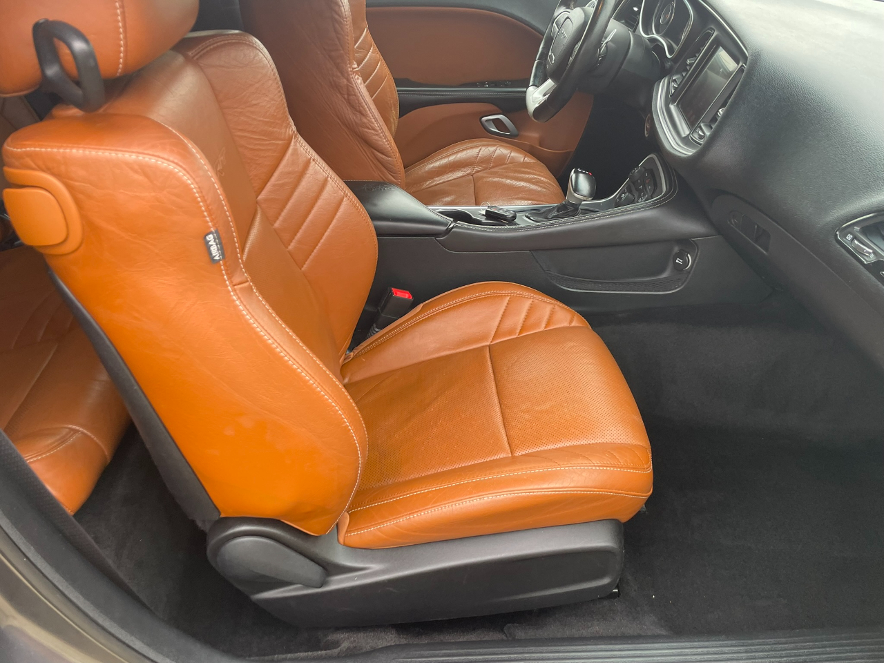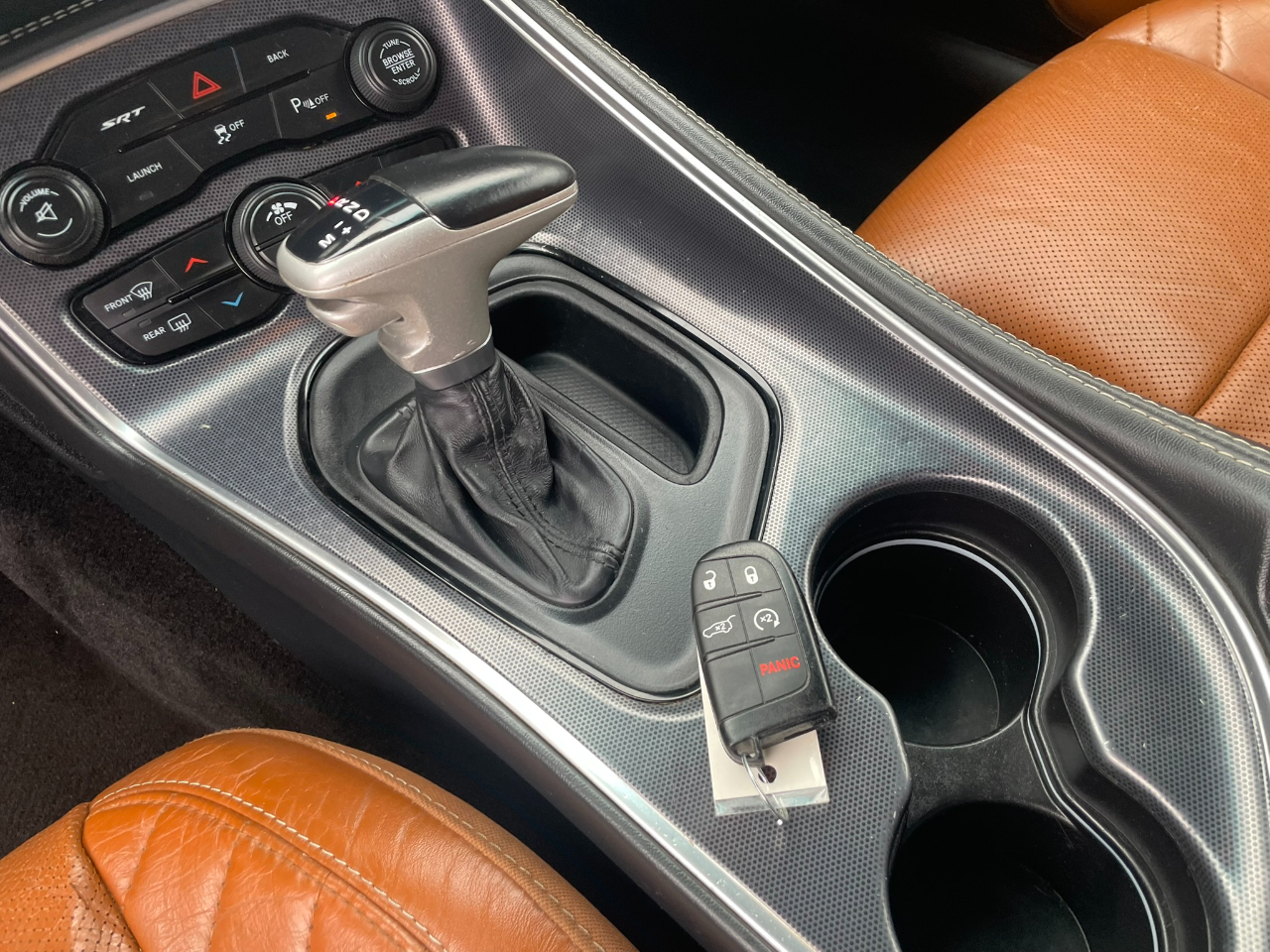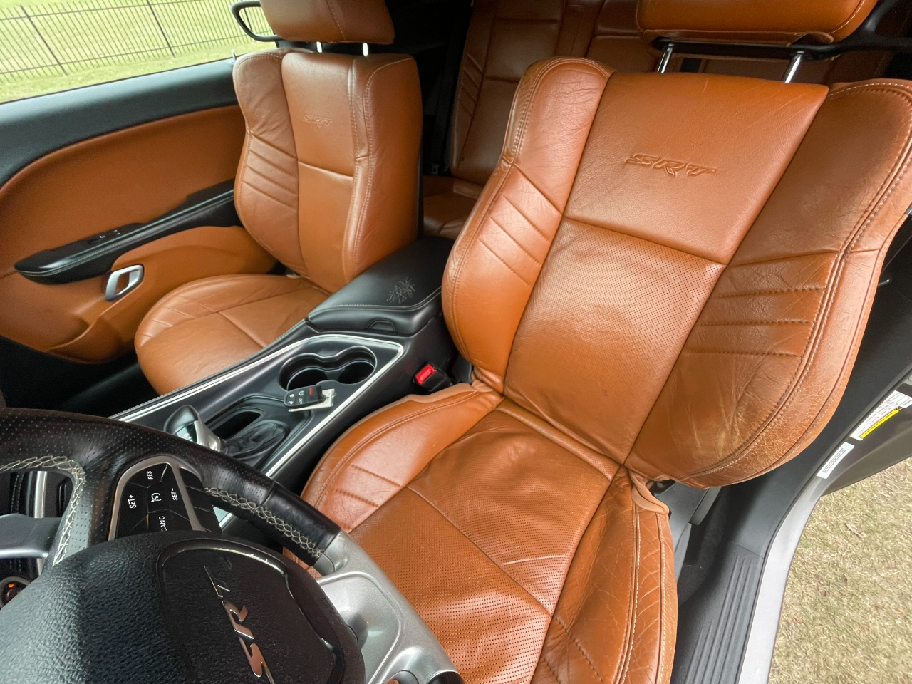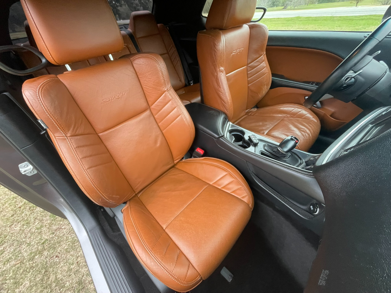 2015 DODGE CHALLENGER SRT GRANITE CRYSTAL METALLIC CLEARCOAT TAN LEATHER UPHOLSTERY 6.4L HEMI V8 8 SPEED AUTOSTICK AUTOMATIC TRANSMISSION W OVERDRIVE AM/FM/XM HARMON KARDON SOUND BACKUP CAM PUSH BUTTON START REMOTE KEYLESS ENTRY HEATED SEAT POWER SEAT HEATED STEERING WHEEL 20 INCH BLACK FORGERD ALUMINUM WHEELS DUAL EXHAUST REAR SPOILER 25120355835622