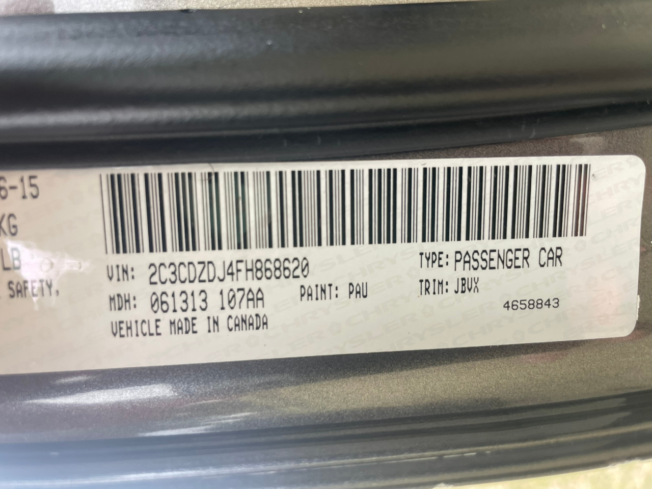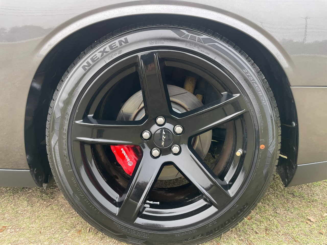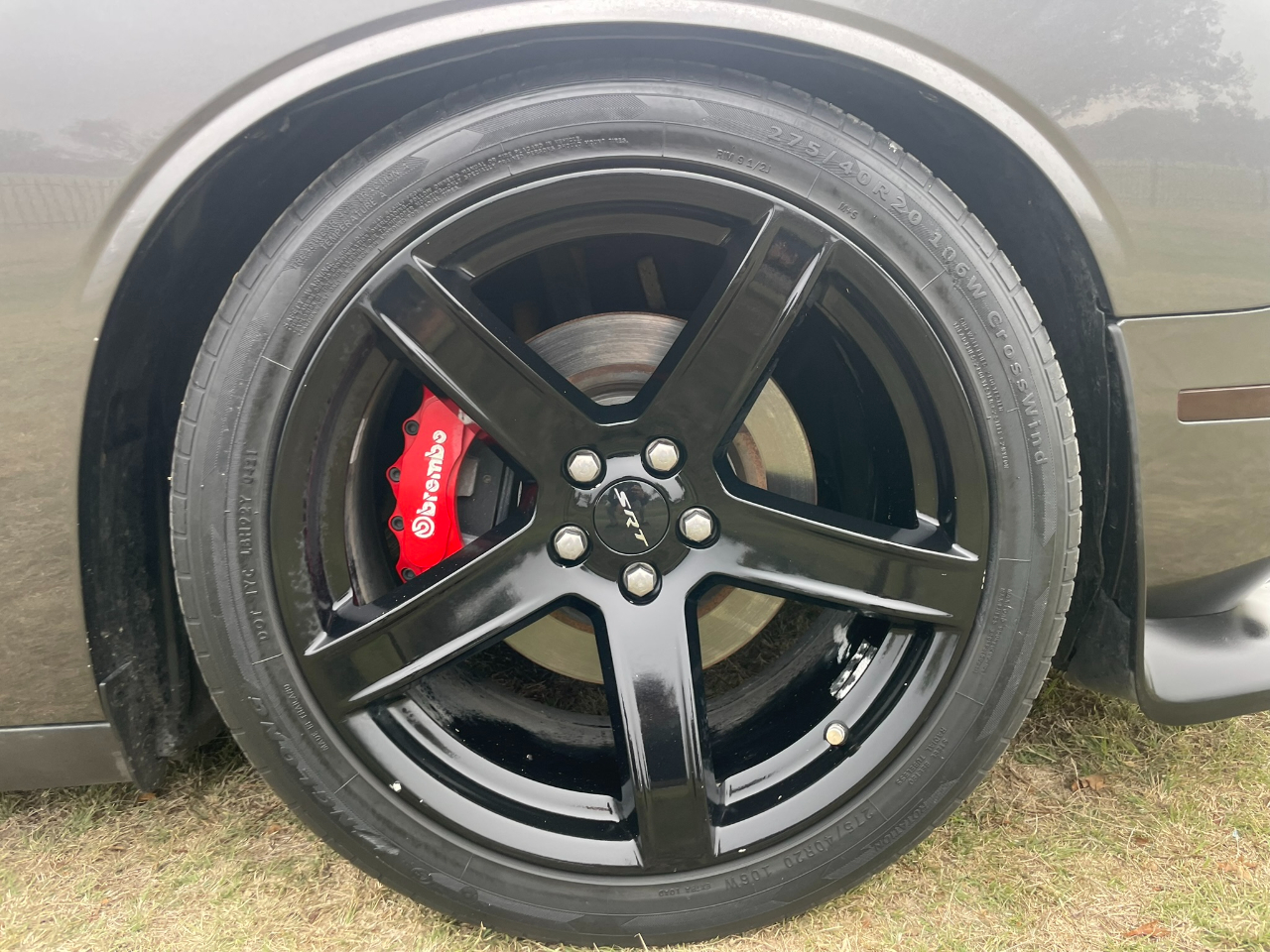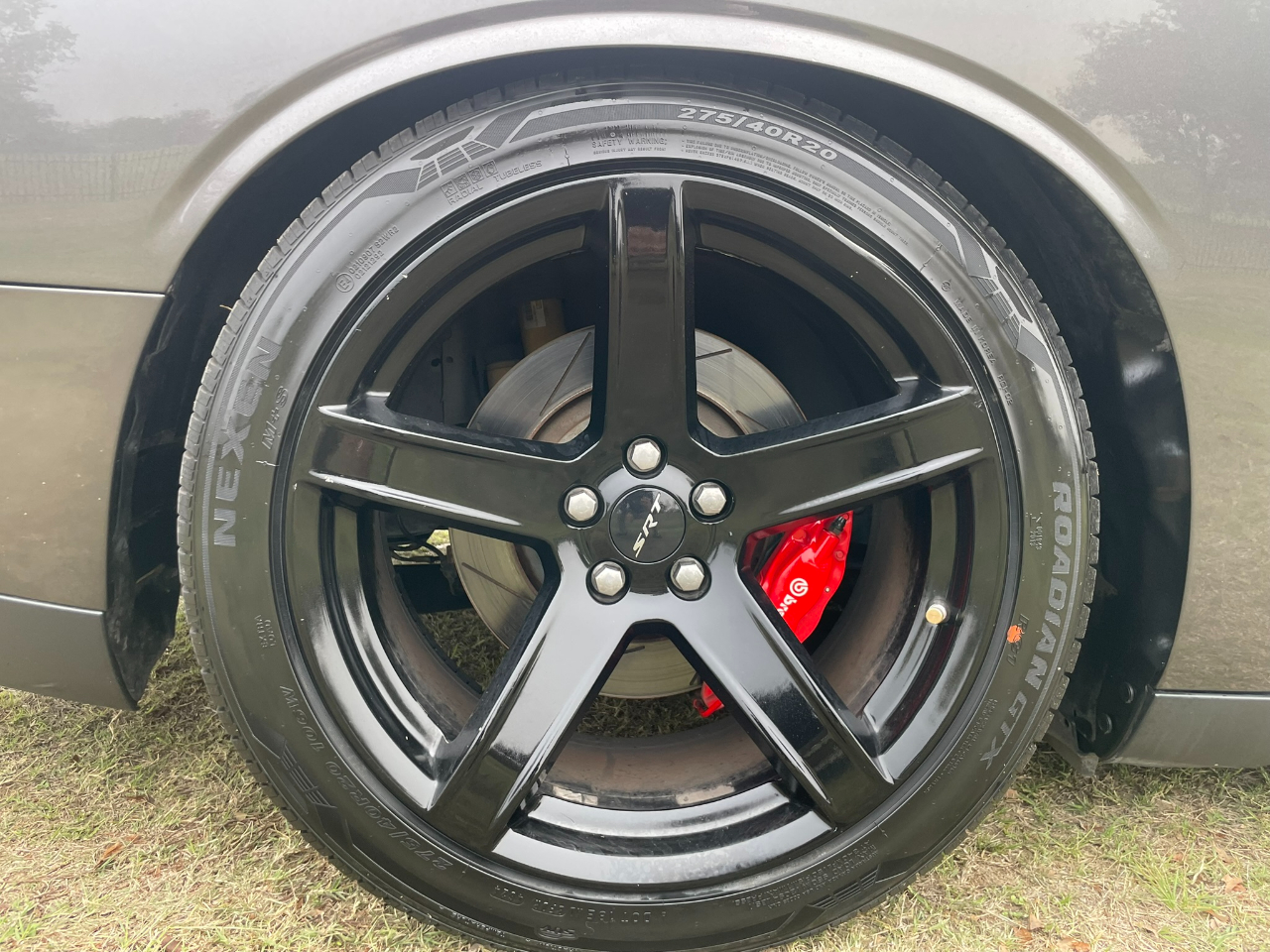 2015 DODGE CHALLENGER SRT GRANITE CRYSTAL METALLIC CLEARCOAT TAN LEATHER UPHOLSTERY 6.4L HEMI V8 8 SPEED AUTOSTICK AUTOMATIC TRANSMISSION W OVERDRIVE AM/FM/XM HARMON KARDON SOUND BACKUP CAM PUSH BUTTON START REMOTE KEYLESS ENTRY HEATED SEAT POWER SEAT HEATED STEERING WHEEL 20 INCH BLACK FORGERD ALUMINUM WHEELS DUAL EXHAUST REAR SPOILER 25120355835622
